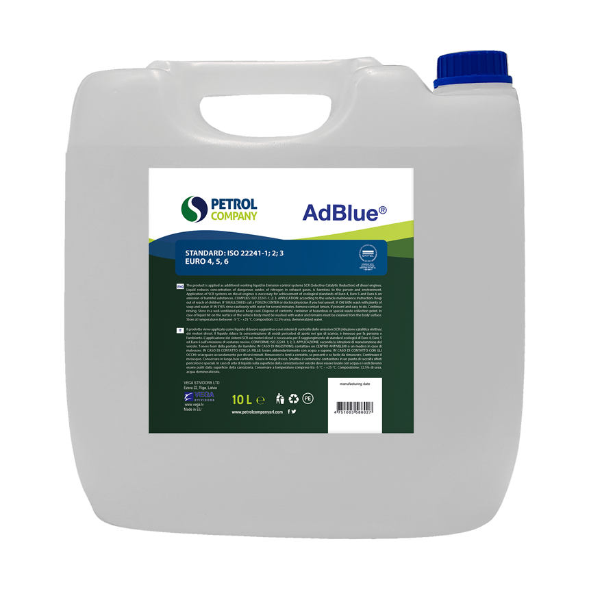 Liquido di lavoro aggiuntivo o nei sistemi di controllo delle emissioni SCR (riduzione catalitica elettiva) dei motori diesel. Riduce la concentrazione di ossidi pericolosi di azoto nei gas di scarico. L’applicazione dei sistemi SCR sui motori diesel è necessaria per il raggiungimento di standard ecologici di Euro 4, 5 e 6 sull’emissione di sostanze nocive. CONFORME: ISO 22241-1; 2; 3